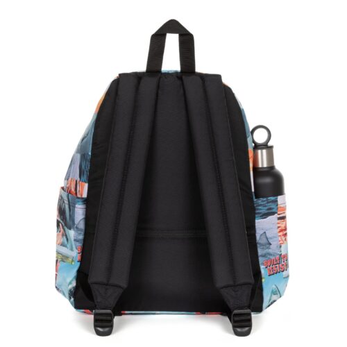 Wasserabweisender Rucksack mit gepolstertem 14-Zoll-Laptopfach, Flaschenhalter und nostalgischem JAWS-Print. Organisiert deine Technik und Getränke sicher – bereit für Abenteuer an Land und Wasser.